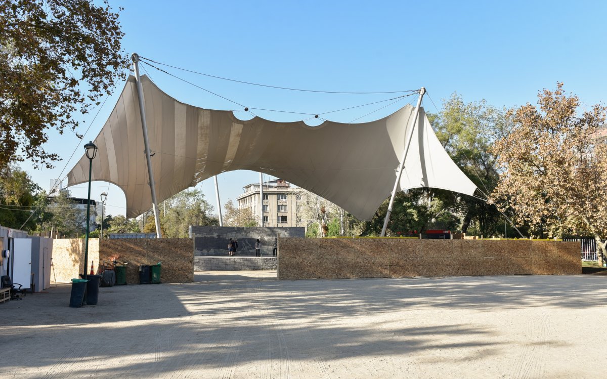 Ubicado en el corazón del Parque Bustamante, este Anfiteatro ha experimentado diferentes mejoras en el último tiempo (jardines sustentables, nuevos árboles y moderno mobiliario) pero faltaba uno de los más importantes: el cambio del emblemático toldo que cubre el escenario.