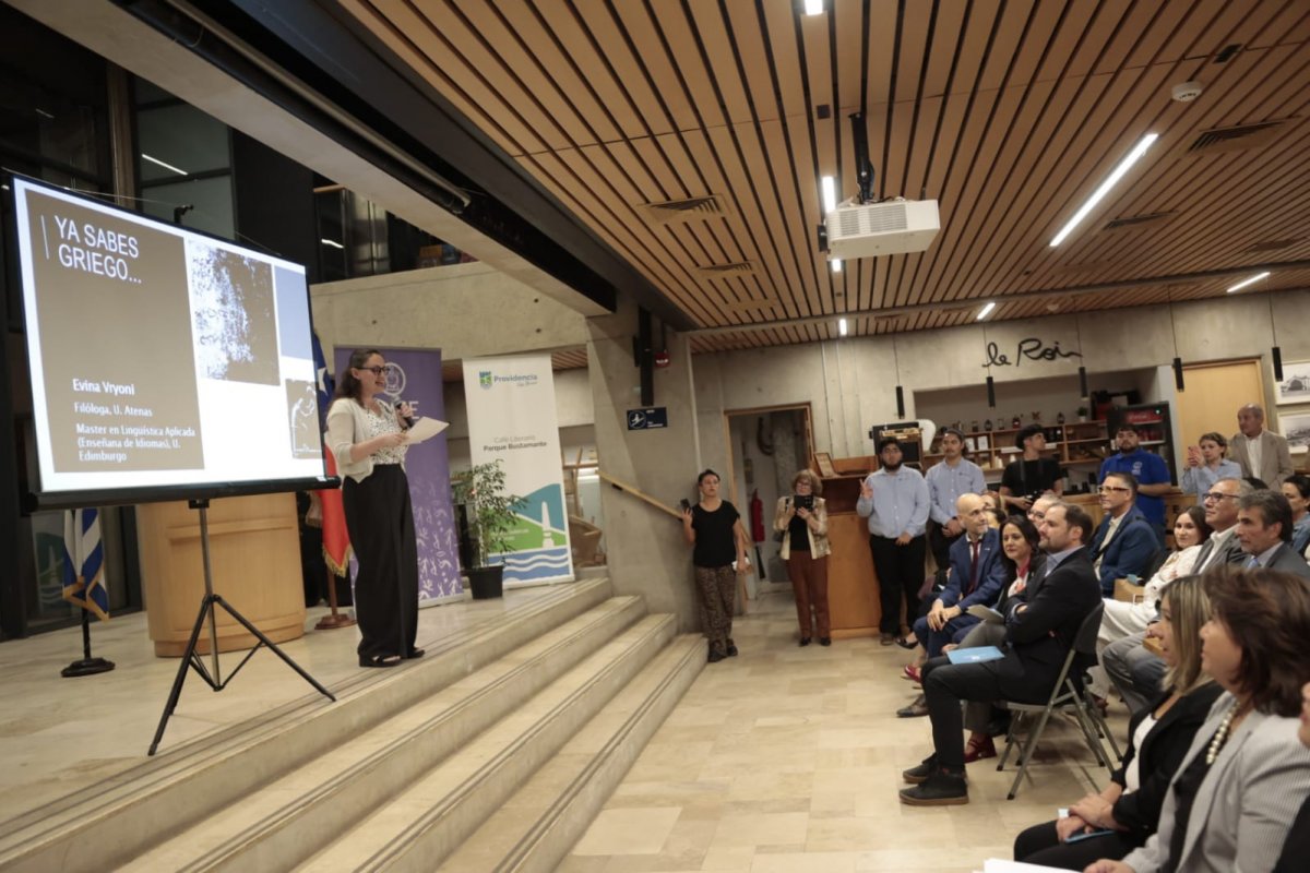 “Las mismas ideas que aún definen nuestro mundo, como política, ética, la propia democracia, el diálogo o la diplomacia nacieron y fueron nombradas en griego. Incluso ahora, en la era digital, sigue siendo esencial: cada nuevo descubrimiento científico requiere un nombre y los científicos recurren instintivamente al griego por su incomparable capacidad para formar palabras compuestas y su precisión. Pocas lenguas pueden afirmar tener una tradición literaria interrumpida que se extiende durante 3.500 años, y lo menos que podemos hacer es mantener esas palabras vivas”, expuso el Excelentísimo Embajador de Grecia en Chile, Sr. Nikolaos Piperigkos.